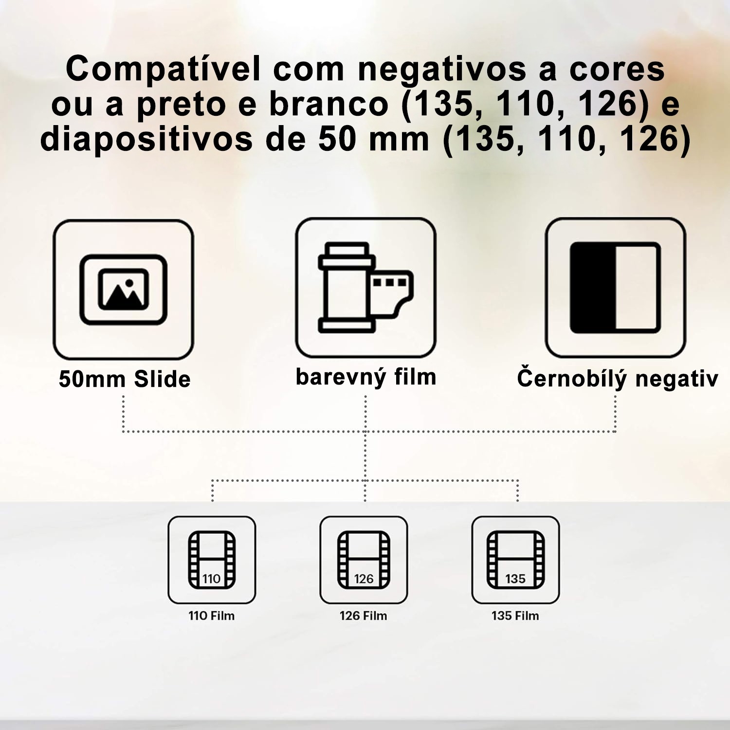 Digital Film Scanner, um scanner de películas e diapositivos que converte negativos e diapositivos a cores e a preto e branco de 35 mm, 126 mm e 110 mm em fotografias digitais JPEG de alta resolução e 22 megapixéis.