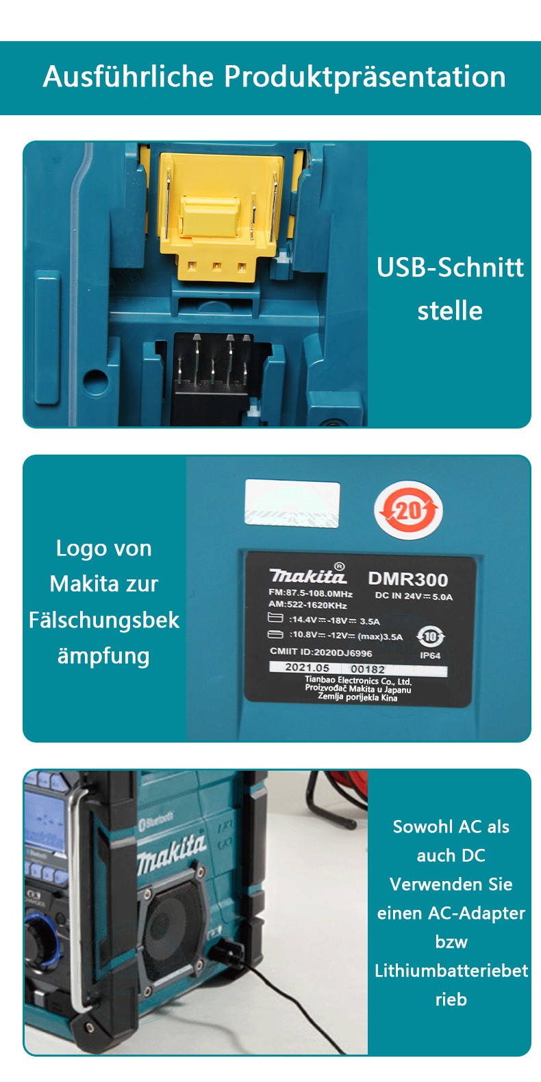 Wiederaufladbarer Lautsprecher Makita DMR108B/DMR300