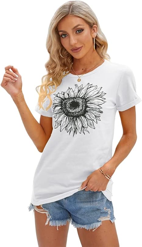 Ženska majica s kratkimi rokavi, majica z vzorcem sončnice, ohlapna poletna majica